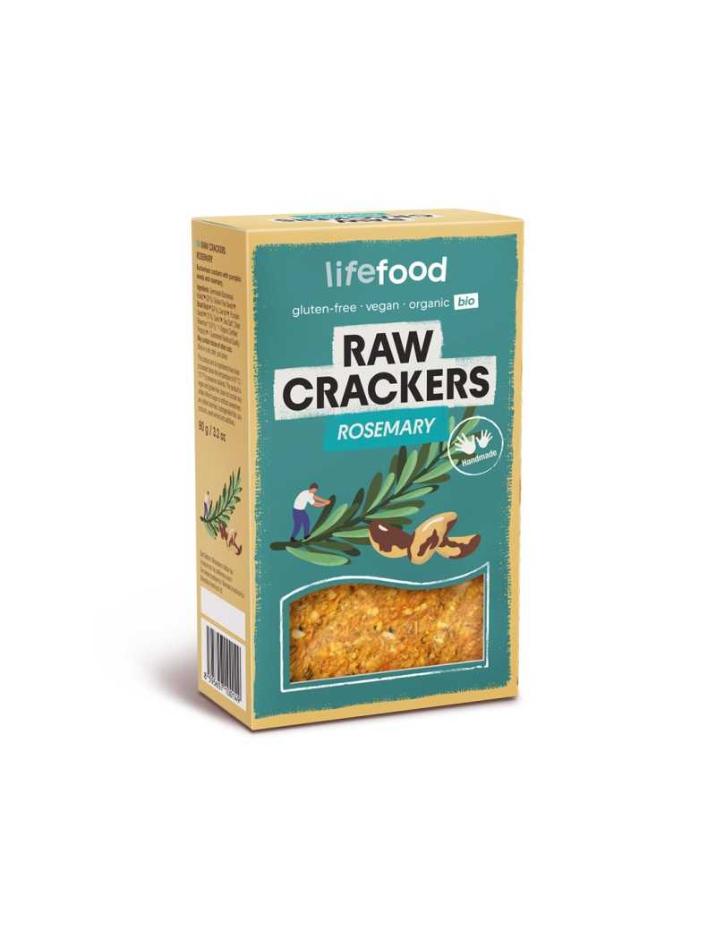 Non cuits, riches en nutriments et en énergie : voilà ce qui caractérise nos crackers. Savourez ces crackers croustillants aux noix cuites à la vapeur, au sarrasin et au romarin séché, qui leur confère une note herbacée caractéristique. Ces crackers accompagnent à merveille une salade, mais vous pouvez aussi les déguster tels quels, comme en-cas sain et savoureux.