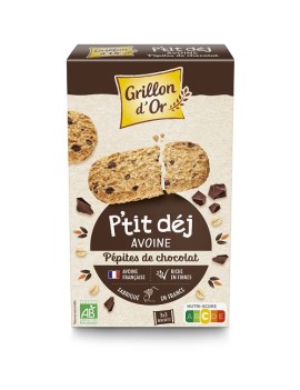 Des biscuits pour le petit-déjeuner à l'avoine complèt aux chocolat. Faciles à transporter grâce à leurs sachets fraicheurs !