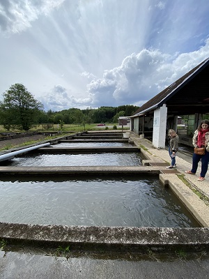 La pisciculture familiale d'Olivier Mathonet constitue la seconde et (déjà) dernière étape pour les truites. Coincée entre l'Amblève et le Ru de Recht, elles y poursuivront leur croissance jusqu'à l'âge adulte. C'est au cœur même du site que les poissons seront ensuite pêchés et préparés dans un délai le plus court possible pour un maximum de fraicheur.