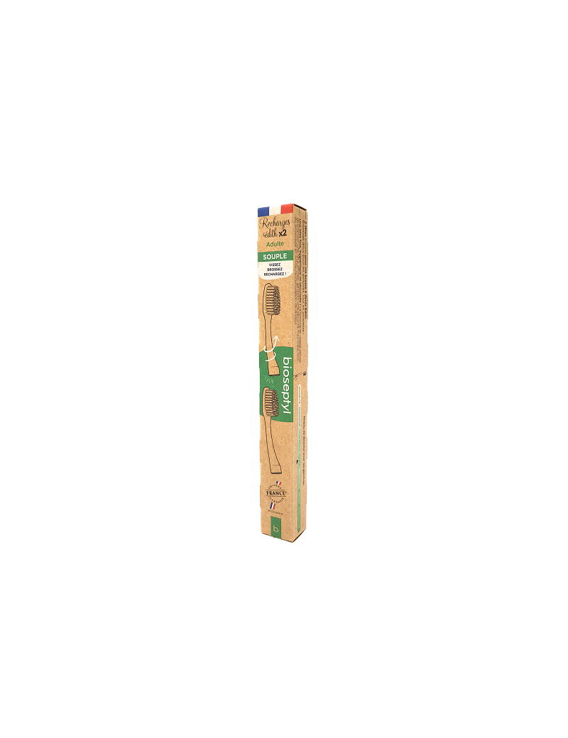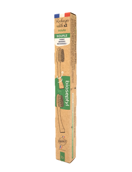 Les filaments bio sur nos brosses à dents :Nous utilisons des filaments à base végétale pour nos brosses à dents. Nos tests permettent de garantir une efficacité égale lors du brossage, en situation de simulation de brossage correspondant à une durée de 3 mois (durée de vie maximale conseillée par les dentistes pour les brosses à dents).