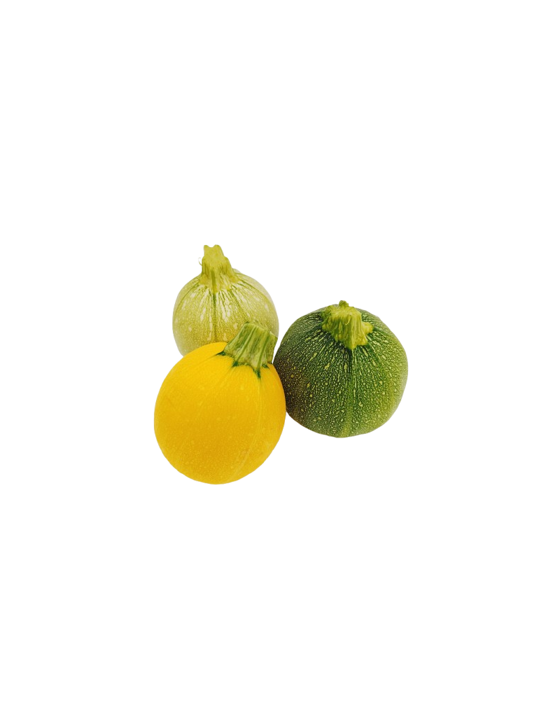 Ce mélange de courgettes rondes vertes et jaunes apporte de la couleur et de la créativité en cuisine. Leur forme sphérique est idéale pour les farcis, mais elles se prêtent aussi à la cuisson au four, à la vapeur ou en tranches poêlées. Leur goût doux et leur texture fondante en font un ingrédient polyvalent, aussi esthétique que savoureux.