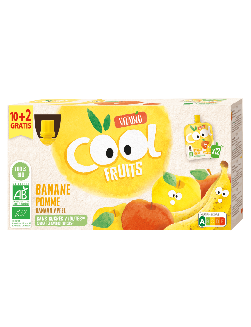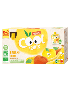 Banane* 50%, pomme de France* 49,5%, jus de citron concentré* 0,5%.*Ingrédients issus de l'agriculture biologique