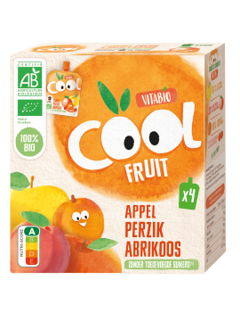 Pomme de France* 69,9%, pêche* 20%, abricot* 10%, jus de citron* 0,1%.*Ingrédients issus de l'agriculture biologique