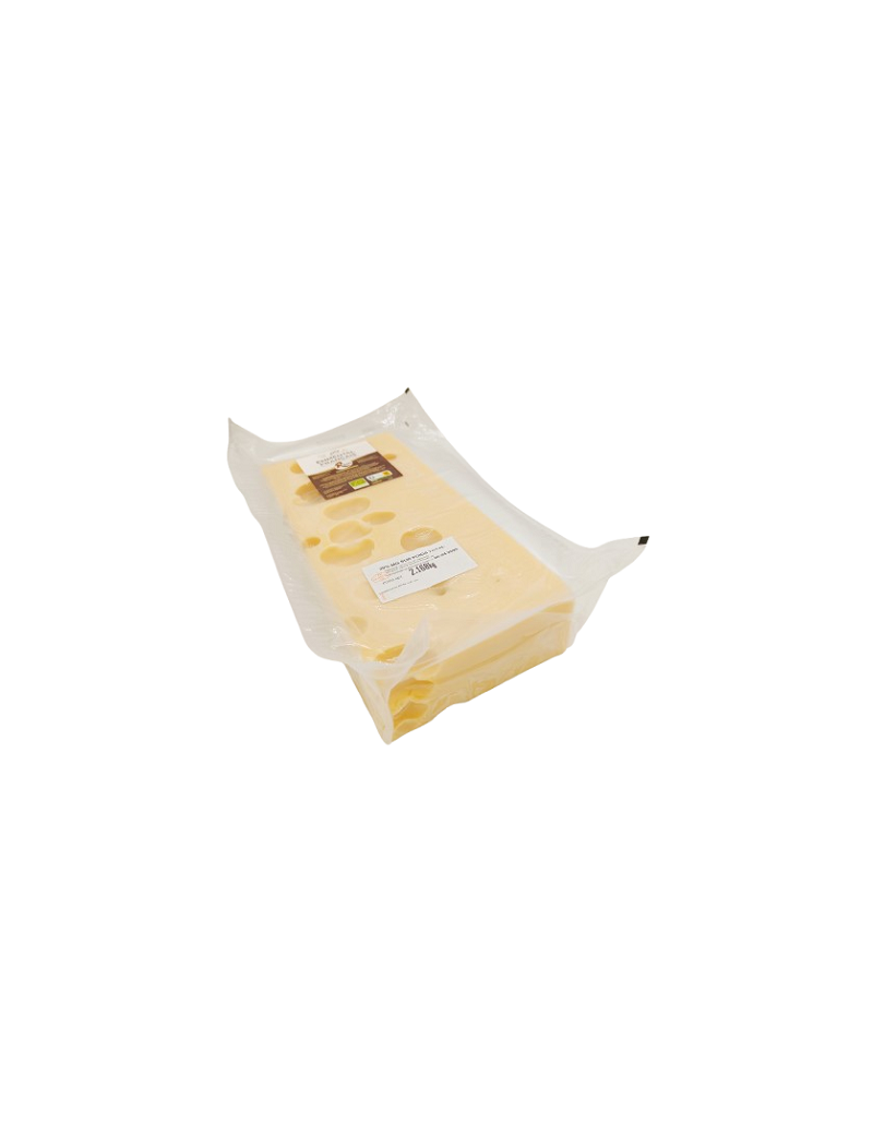 L'Emmental est un fromage à pâte pressée cuite fabriqué, selon la tradition, au lait cru de vache. Le lait, BIO, est collecté dans la région de la Franche–Comté. Après fabrication, les meules sont affinées 10 semaines minimum suivant les règles de l’affinage traditionnelles. Sa saveur est acidulée et très peu salée, avec un goût doux et une texture ferme tout en étant élastique et moelleuse. Son odeur est légèrement piquante au nez et fruitée.