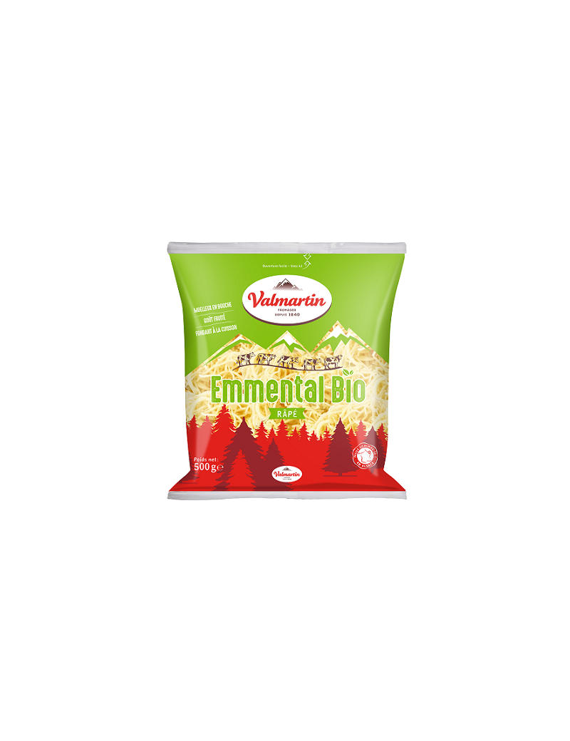 Emmental biologique de vache, râpé fin, à la texture souple et homogène et à la saveur douce et fruitée. Idéal pour gratins, pizzas, salades ou préparations au four et au grill.