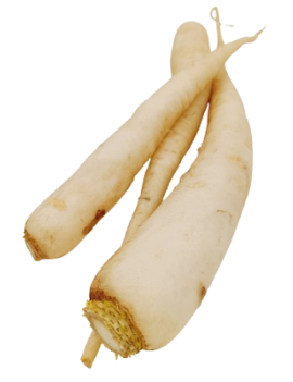 Le radis Daïkon, aussi appelé radis japonais, est une racine blanche allongée à la saveur douce et rafraîchissante, bien moins piquante que le radis rose. Croquant cru, il se râpe dans les salades, se marine à la japonaise, ou se cuisine sauté, en soupe ou en pickles. Très digeste, il est prisé pour ses vertus dépuratives.
