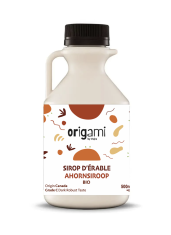 Optez pour les sirops d'érables Origami pour un produit 100% pur et bio, sans additifs ni conservateurs, issu directement des érablières du Québec. Nous proposons le Grade A Ambré Goût Riche en bouteille de 250 ml et en BIB de 5L et le Grade C Foncé Goût Robuste en cruchons de 500 ml et 1 litre et en BIB de 5L.