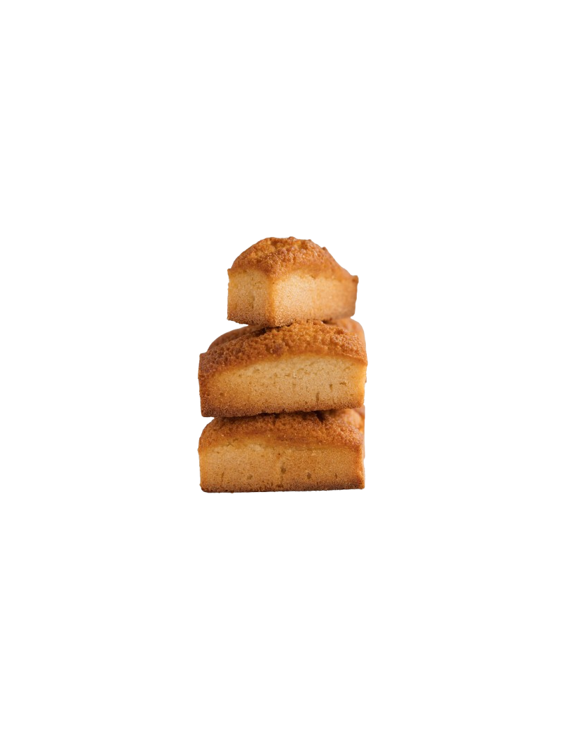 Financier sans gluten au beurre noisette belge. Texture fondante et délicate, sublimée par la poudre d’amande et le miel. Un classique pour une pause gourmande authentique.