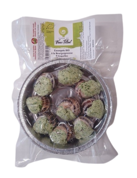 Assiette de 9 escargots réencoquillés fourrés au beurre à l’ail BIOA réchauffer 10 à 12 minutes au four préchauffé à 180°C