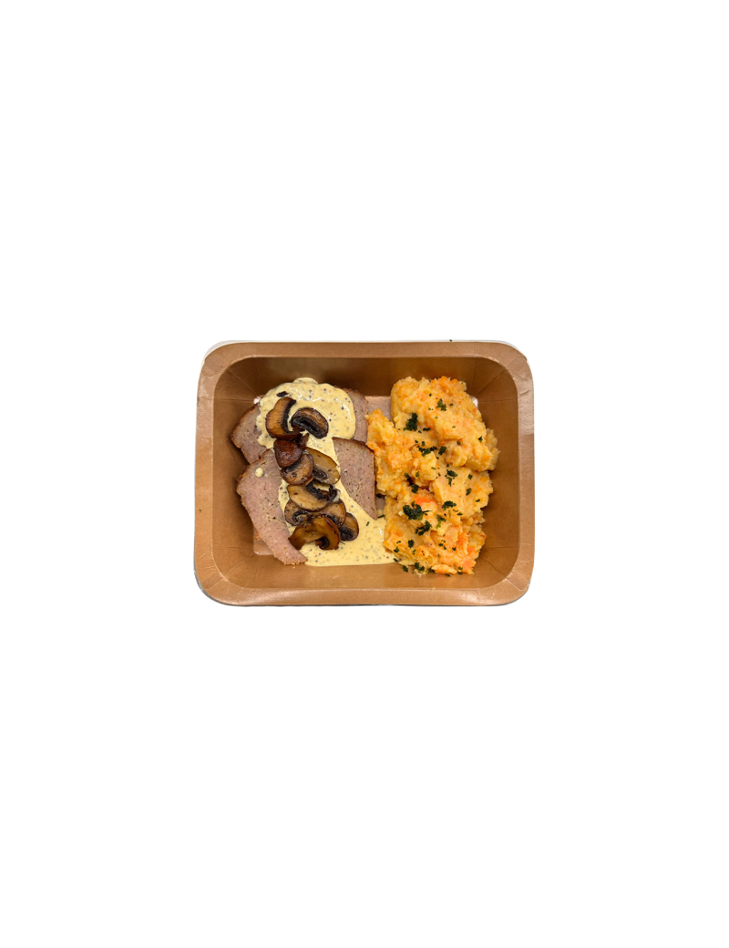 Le Rustic Meat & Mustard associe un stoemp aux carottes onctueux, du pain de viande savoureux et une sauce crémeuse relevée de moutarde. Un plat généreux et réconfortant, aux saveurs authentiques et inspiré de la tradition culinaire belge.