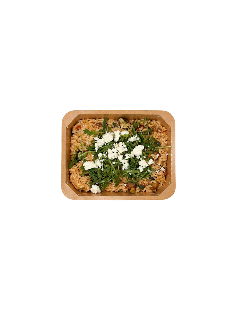 Salade méditerranéenne à base d’orzo, légumes grillés, feta et olives noires, assaisonnée d’huile d’olive et de citron. Une recette fraîche aux saveurs grecques.