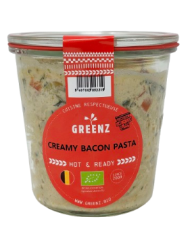 Pâtes gnocchetti nappées d’une béchamel crémeuse et accompagnées de lardons fumés au bois de hêtre et de légumes. Un plat généreux et réconfortant.