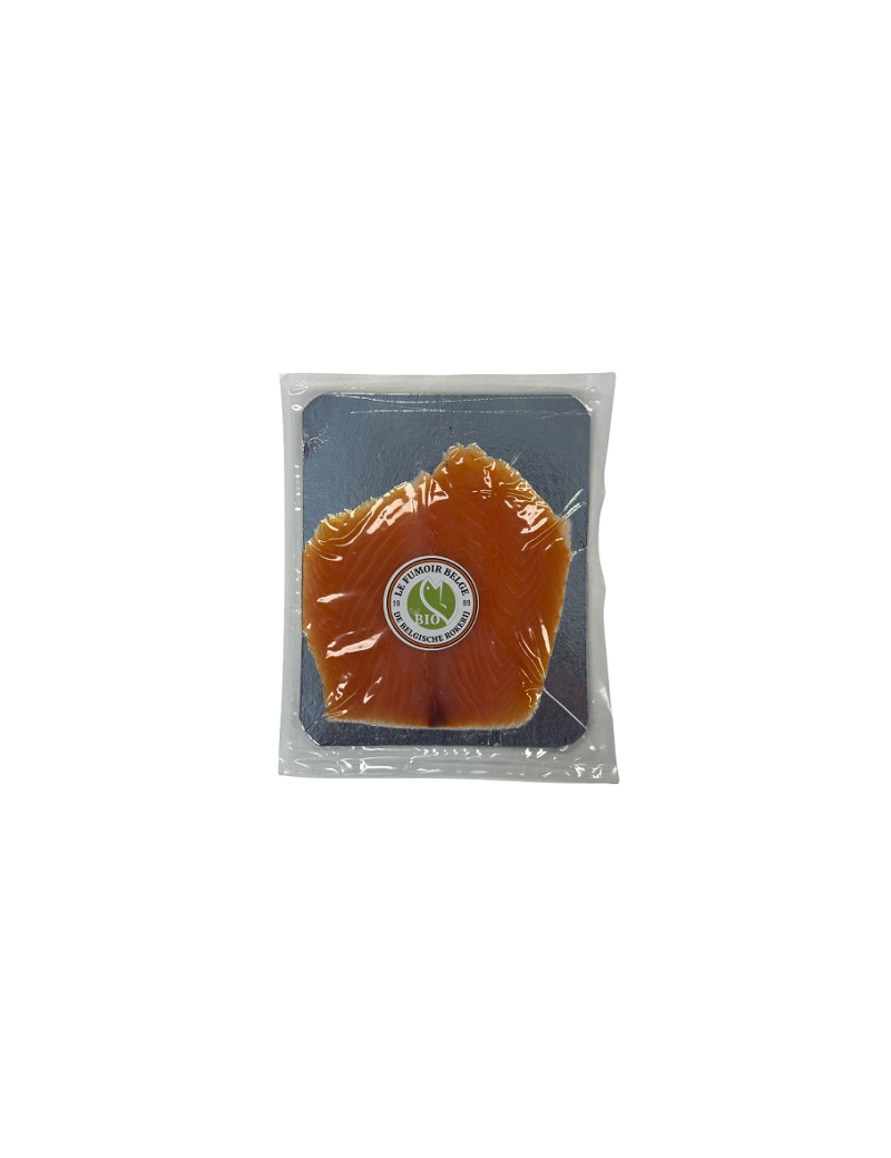 Saumon Norvégien salé au sel sec, fumé à froid au bois de hêtre et tranché machine