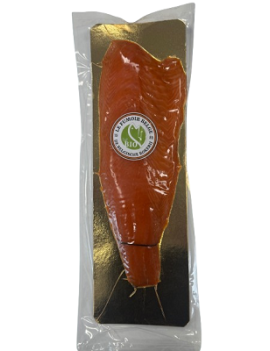 Saumon Norvégien salé au sel sec, fumé pendu à froid au bois de hêtre et tranché à la main