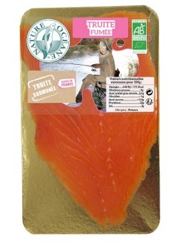 Truite bio fumée lentement au bois de hêtre et tranchée en longueur