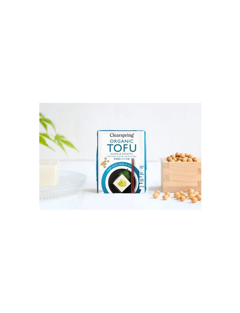 Le tofu soyeux est un tofu qui est fait à partir de lait de soja non caillé. Il contient seulement trois ingrédients: des haricots de soja de première qualité, du nigari (chlorure de magnesium) et de l'eau de source du Mont Fuji. Le tofu soyeux a une texture lisse et absorbe la saveur des autres aliments. On l'utilise dans des recettes salées et sucrées, par exemple pour faire des sauces, des quiches et des desserts.