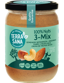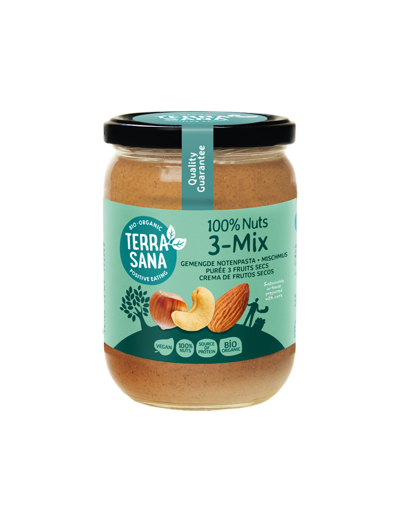 La purée 3 mix de noix est un délicieux et léger mélange de noisettes, noix de cajou et amandes. Délicieux sur une tranche de pain, un cracker ou un toast. Egalement délicieux comme base de sauce ou dans des biscuits maison.