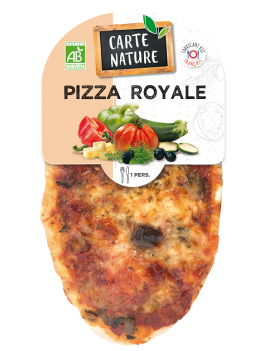 La version individuelle de la pizza Royale associe sauce tomate, légumes variés, champignons, emmental et olives. Une formule savoureuse pour vos pauses généreuses.