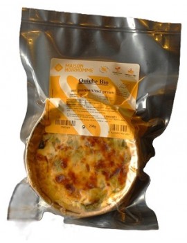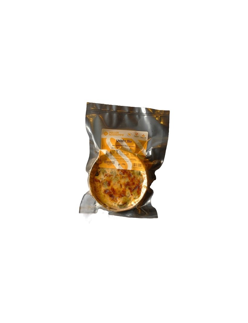 Dégustez cette quiche aux poireaux artisanale BIO, une recette maison préparée avec des ingrédients de qualité. Sa pâte dorée et croustillante, garnie d'une fondue de poireaux, en fait un plat aussi réconfortant que délicieux. Parfait pour un repas complet ou une pause salée. Format x1