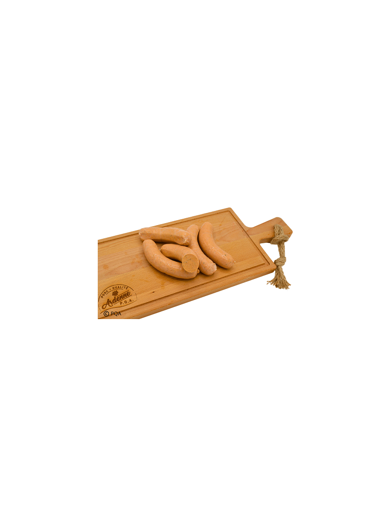Présenté sous forme de fine saucisse cuite à pâte fine. C'est un mélange de viande de porc bio, passé au cutter avec les différentes épices bio. Le tout est cuit et légèrement fumé. Convient très bien pour la choucroute.