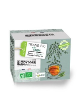 Le Thym (Vulgaris) Biodyssée est naturellement un puissant antiseptique et stimulant général. Cette plante aromatique généralement reconnue pour son côté si parfumé en cuisine, ainsi présentée en sachet infusette, peut être utilisée facilement pour aider à sortir d’un rhume ou digérer en douceur. Sa saveur puissante avec une légère amertume préconise une consommation de préférence en infusion chaude pouvant être agrémentée d’une cuillère de miel pour l’arrondir.