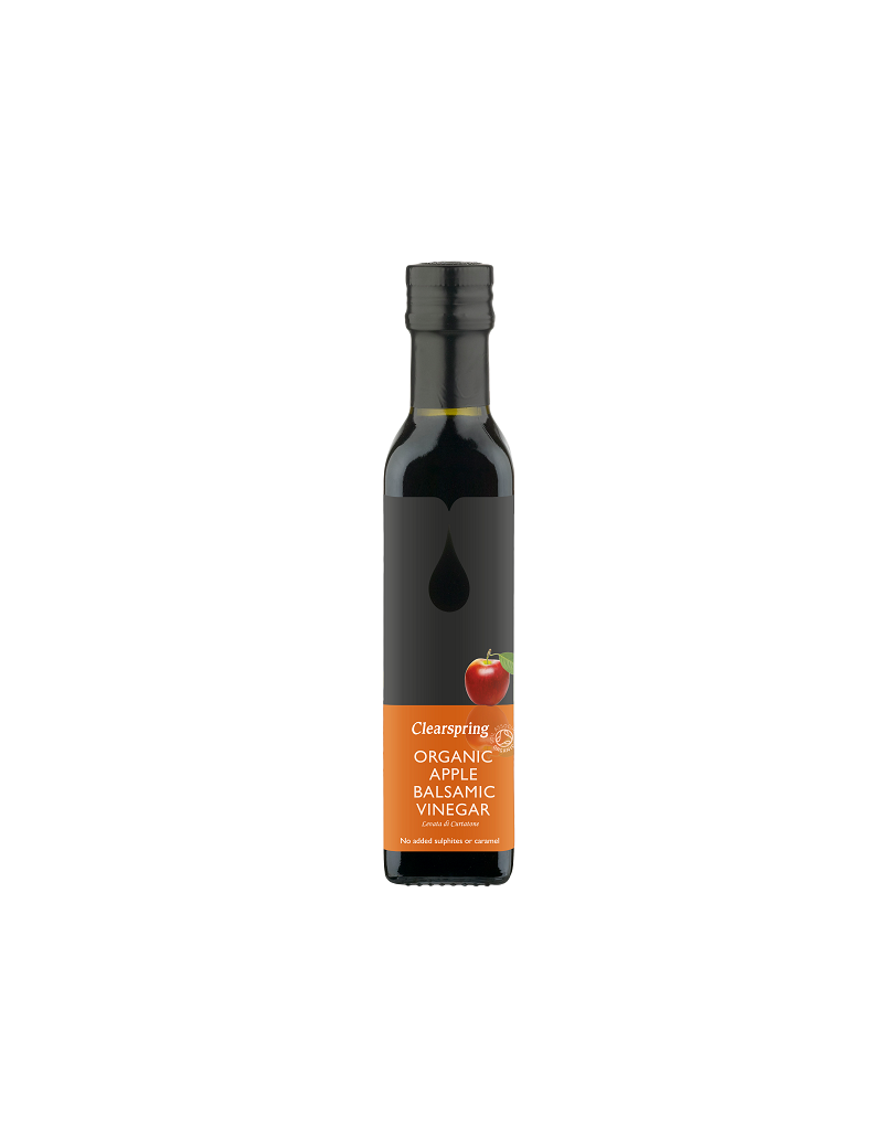 Le vinaigre de cidre balsamique Clearspring est un mélange de cidre de pomme et de moût de pomme (à la place du traditionnel caramel de sucre de canne). Il est mûri dans des tonneaux en bois afin de lui laisser le temps de développer un maximum de saveur. Idéal pour assaisonner les salades. Le vinaigre de cidre a été considéré pendant longtemps comme un élixir de longévité. En effet ses bienfaits pour la santé sont reconnus. Il est important qu'un vinaigre de cidre ait une acidité de 0.5 maximum. Son goût de pomme léger et doux donne une note rafraîchissante aux sauces, salades et légumes. A conserver à température ambiante et à l' abri de la lumière. Le produit ne contenant pas de conservateurs, il peut se former des dépôts, n'altérant pas la qualité du produit.