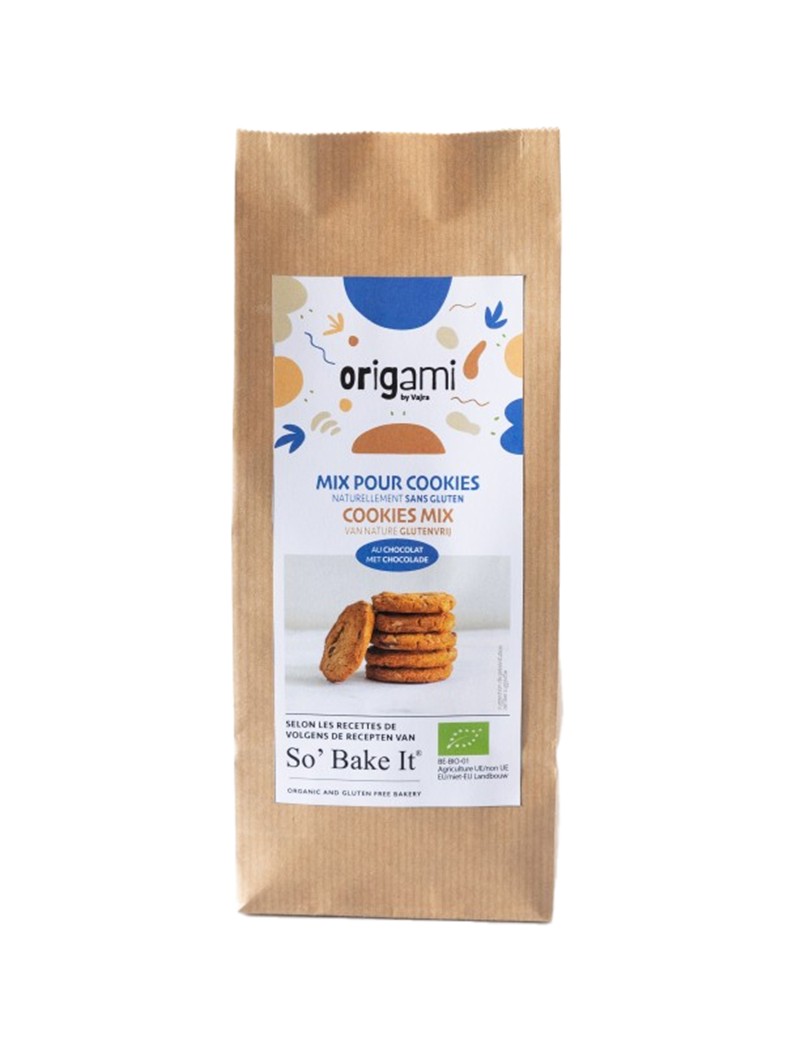 Natuurlijk glutenvrije mix voor het maken van chocolade cookies. Recept voor 8 à 10 cookies1.Giet de mix in een kom. 2. Voeg 1 ei, 90g zachte boter en een snufje zout toe. 3. Meng tot alle ingrediënten zijn opgenomen. 4. Schep 8 tot 10 hoopjes deeg op bakpapier. 5. Bak 12min op 185°C.