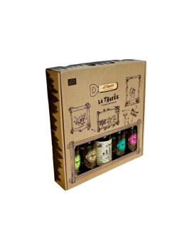 Een lokale geschenkdoos, klaar om te verkopen! Ontdek onze Discovery Box: 5 biologische ambachtelijke bieren gebrouwen in de Haute Ardenne, verpakt in een geïllustreerde kartonnen doos, met geïntegreerde houten flesopener. Ideaal voor uw cadeau-afdeling en uw klanten die van authentieke producten houden.
