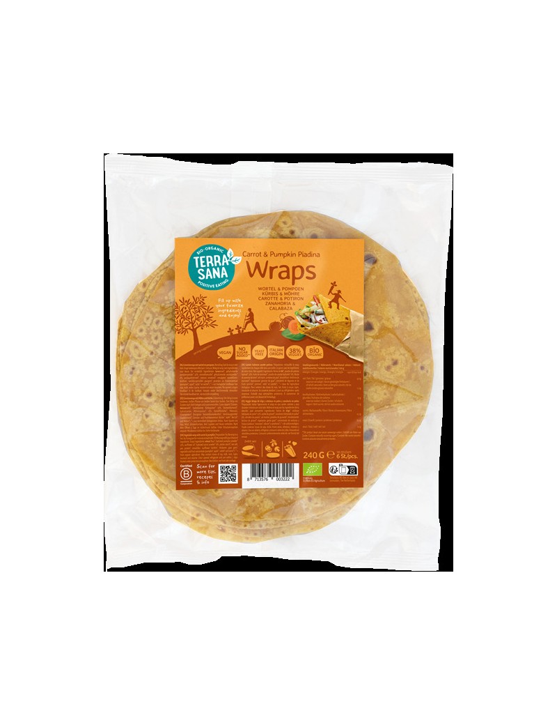 Klaar voor een groente-boost? Kies dan voor de wortel-pompoenwrap. De wrap bevat 38% groenten. Geniet van een Bourgondisch diner met een groentewrap die je smaakpapillen prikkelt en je groente-inname een boost geeft. De piadina is gemaakt door een echte Italiaanse chef-kok die kiest voor kwaliteit in biologische en traditionele recepten. Dat is lekker!