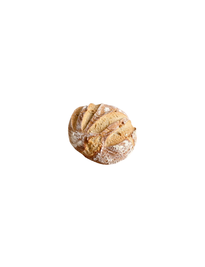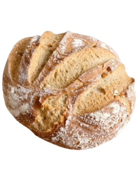 Ambachtelijk glutenvrij zuurdesembrood op basis van blond gierstmeel, volkoren rijstmeel en quinoa. De zachte kruim en evenwichtige textuur maken het een ideale keuze voor liefhebbers van mild zuurdesembrood. Het licht zure en subtiel fruitige aroma, typerend voor natuurlijk zuurdesem, geeft karakter zonder overheersend te zijn. De beigegele korst en ronde vorm benadrukken het ambachtelijke karakter. Perfect bij het ontbijt, als belegde boterham of als begeleiding bij hartige gerechten.