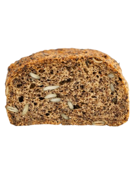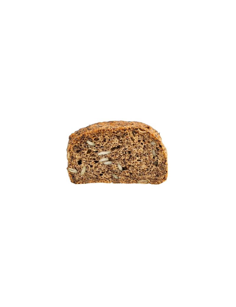 Ketogeen lijnzaadbrood, ontwikkeld voor een koolhydraatarme voeding. Rijk aan vezels, eiwitten en goede vetten voor een langdurig verzadigd gevoel zonder glycemische piek. De compacte en voedzame textuur bevat zichtbare lijnzaad-, chia- en pompoenpitten. De smaak combineert tonen van ei en licht geroosterde zaden.
