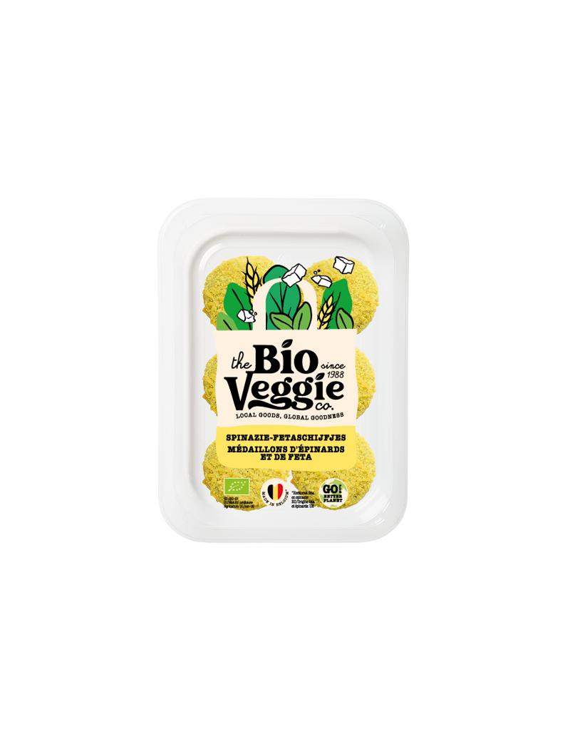 Heerlijke medaillons op basis van spinazie (37%) en feta (13%), met een krokante buitenkant en een zachte, smeuïge binnenkant. Afgewerkt met een vleugje oregano voor een perfecte balans tussen frisse groenten en volle kaassmaak. Snel en eenvoudig te bereiden, ideaal als hoofdgerecht, bijgerecht of om te delen als aperitief. Klaar in ongeveer 5 minuten in de pan.