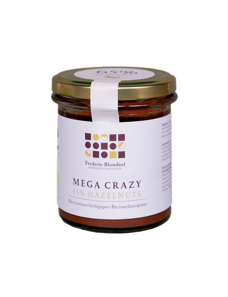 Onze spreads zijn een ode aan de hazelnoot.Dit product is puur genot. We spelen, maar we maken geen grapjes. Gevuld met geroosterde hazelnoten (tot 65%) is elk van onze spreads een eerbetoon aan de prachtige kwaliteit van de Italiaanse hazelnoot. MEGA CRAZY - 65% hazelnoten en op basis van panela suiker.