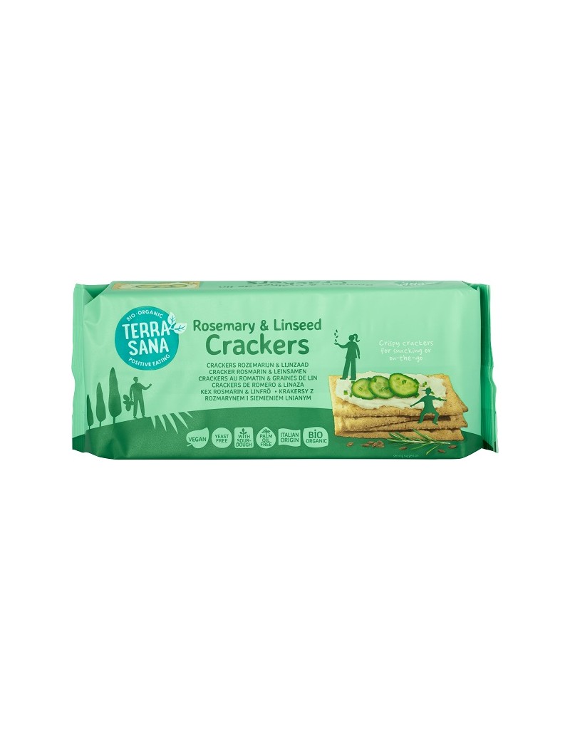 De tarwe en lijnzaadcrackers met rozemarijn zijn met zuurdesem en volle tarwemeel gemaakt. Heerlijk met uw favoriet beleg maar ook natuur als droog tussendoortje.