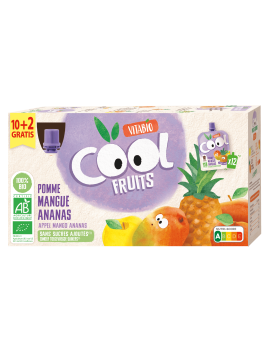 Pomme de France* 59,9%, mangue* 30%, jus d'ananas* 10%, jus de citron* 0,1%.*Ingrédients issus de l'agriculture biologique