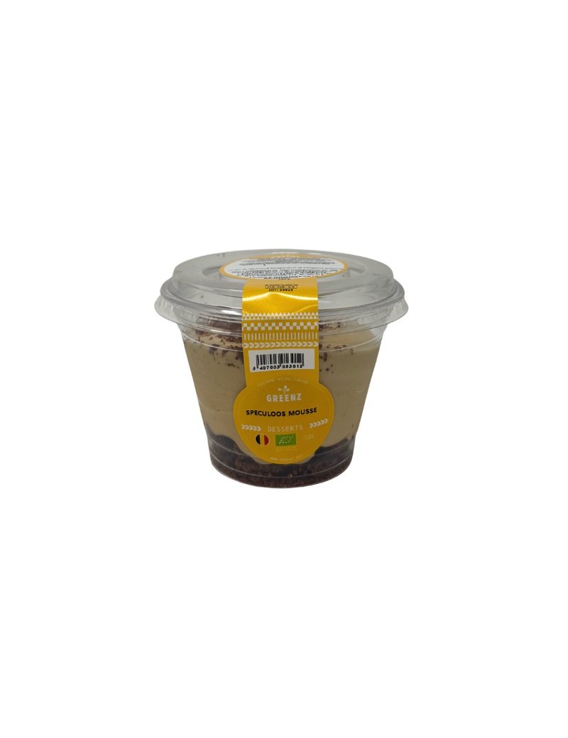 Geniet van onze speculoosmousse, een romig en heerlijk dessert dat de zachtheid van verse room en boter combineert met de rijke smaak van speculooskoekjes. Bereid met kwaliteitsvolle ingrediënten uit de biologische landbouw, is deze ambachtelijke mousse een echte verwennerij. Heerlijk om fris te serveren, puur of samen met fruit voor een extra vleugje lekkernij.
