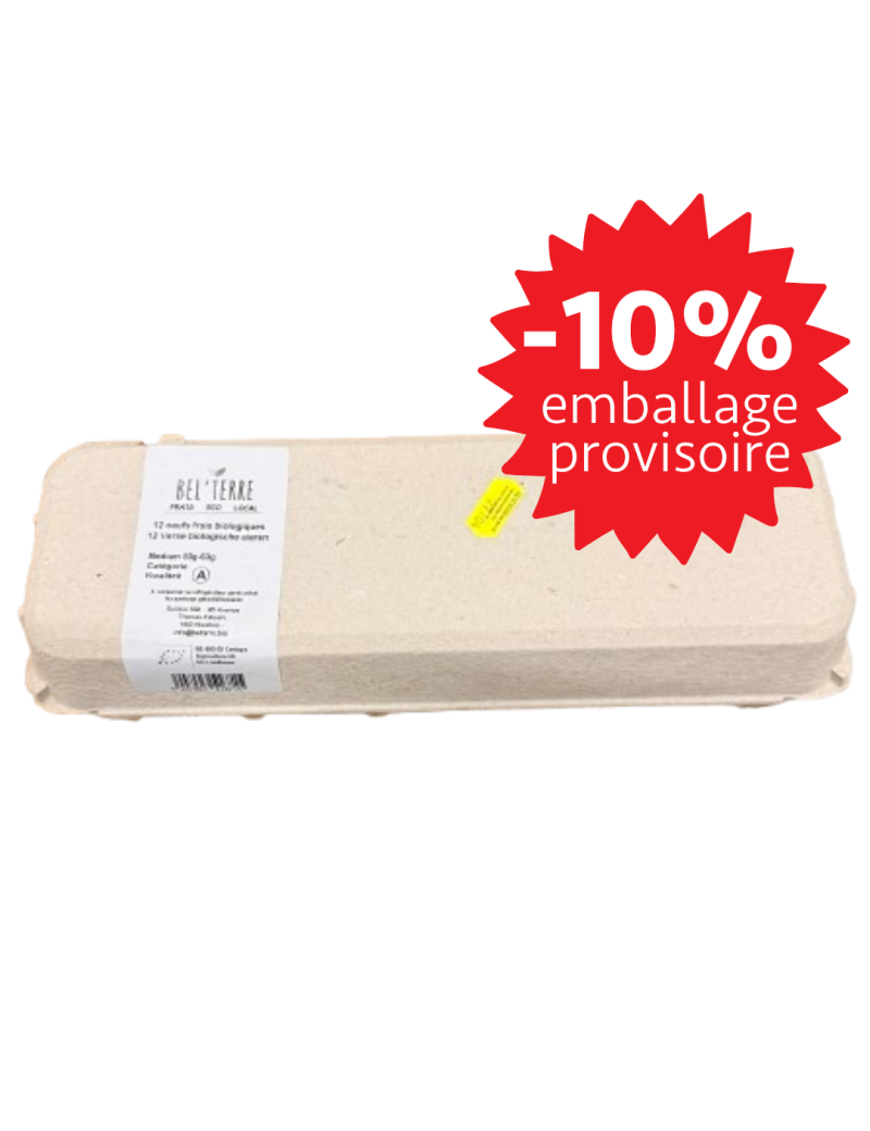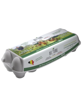 Bied je klanten het allerbeste: verse eieren van kippen met vrije uitloop, rechtstreeks van de boerderij van d'Halluin in Froidchapelle. Sinds 2008 ontwikkelt de Ferme du Four à Verre een biologische legkippenboerderij, omgeven door 200 hectare gewassen, die ook biologisch worden verbouwd. Natuurlijk is 70% van het voer van de kippen afkomstig van granen die op de boerderij worden verbouwd: tarwe, maïs en zonnebloempitten. Deze eieren zijn verkrijgbaar in doosjes van 12 stuks. Een praktisch formaat, ideaal voor gezinnen, kleine traiteurs of gewone consumenten. En altijd met de garantie van een eerlijke prijs voor de boer.