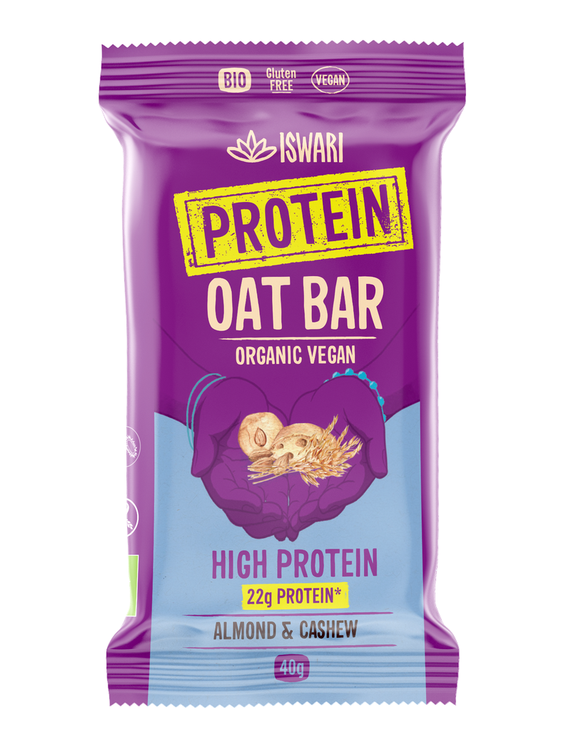 Iswari's Protein Oat Bars zijn een unieke combinatie van volkoren haver en hoogwaardige plantaardige eiwitten. De repen zijn samengesteld om gemakkelijk verteerbare plantaardige eiwitten zonder toevoegingen te leveren, waardoor ze een verzadigd gevoel geven, de eetlust reguleren en een stabiel energieniveau gedurende de dag behouden. Elke reep is rijk aan eiwitten en garandeert een aanzienlijk eiwitgehalte per portie, zonder concessies te doen aan de smaak. Met een uitgebalanceerd voedingsprofiel zijn deze repen de ideale aanvulling op een eiwitrijk dieet en voorzien ze het lichaam van de voedingsstoffen die het nodig heeft om goed te functioneren. Of het nu als tussendoortje is of voor herstel na een training, Iswari's Protein Oat Bars bieden een hoogwaardige eiwitbron met de focus op gezondheid en welzijn.