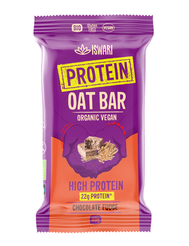 Iswari's Protein Oat Bars zijn een unieke combinatie van volkoren haver en hoogwaardige plantaardige eiwitten. De repen zijn samengesteld om gemakkelijk verteerbare plantaardige eiwitten zonder toevoegingen te leveren, waardoor ze een verzadigd gevoel geven, de eetlust reguleren en een stabiel energieniveau gedurende de dag behouden. Elke reep is rijk aan eiwitten en garandeert een aanzienlijk eiwitgehalte per portie, zonder concessies te doen aan de smaak. Met een uitgebalanceerd voedingsprofiel zijn deze repen de ideale aanvulling op een eiwitrijk dieet en voorzien ze het lichaam van de voedingsstoffen die het nodig heeft om goed te functioneren. Of het nu als tussendoortje is of voor herstel na een training, Iswari's Protein Oat Bars bieden een hoogwaardige eiwitbron met de focus op gezondheid en welzijn.