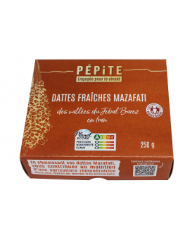 Deze verse Mazafati dadels (met pit) worden halfrijp geoogst en hebben smeltend, romig vruchtvlees en een delicaat gekarameliseerde smaak. Ze worden geproduceerd in de Jebal Barez valleien in Iran en zijn het resultaat van eeuwenoude landbouwpraktijken.