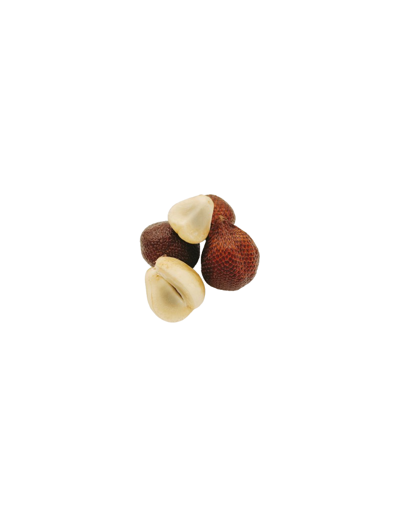 De slangenvrucht (salak) valt op door zijn bruine, schubachtige schil. Het vruchtvlees is knapperig, tussen appel en kokos in, met een unieke exotische smaak – zoet en licht zuur. Gewoon pellen en zo eten. Een zeldzame en fascinerende vrucht.