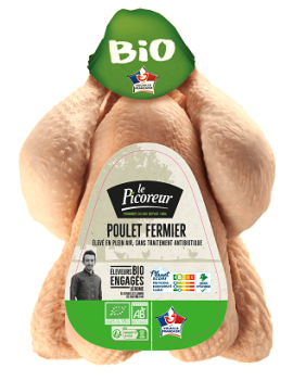 Verwen je familie en vrienden met een lekkere gele Le Picoreur biologische kip! De scharrelkippen van Le Picoreur worden minimaal 81 dagen opgefokt. Ze hebben vrije toegang tot weiden in de open lucht en worden gevoed met biologische voeding. Deze unieke houderijmethode zorgt voor lekker vlees van hoge kwaliteit.