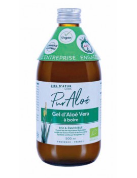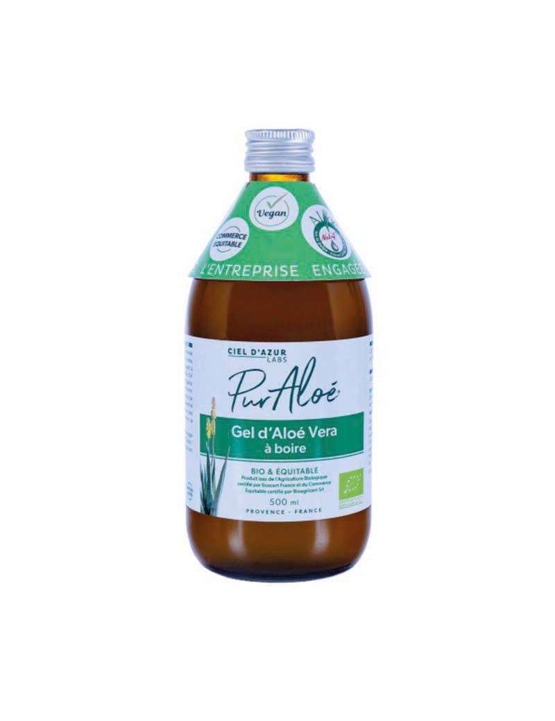 Ons PurAloé-drinkgel is afkomstig van verse pulp van bladeren van de aloë vera barbadensis Miller, die op biologische wijze in Mexico wordt geteeld. De bladeren worden handmatig van de plant verwijderd, zodat het hoge gehalte aan natuurlijke bestanddelen van de pulp behouden blijft. Al deze handelingen geschieden overeenkomstig de door Bio-agricoop vastgestelde norm voor eerlijke handel. In Mane en Provence wordt het sap door middel van koude filtraties verkregen, teneinde de aloïne overeenkomstig de voorschriften voor levensmiddelen te verwijderen. Zo bevat dit drinkgel gegarandeed minder dan 0,00001% aloïne.