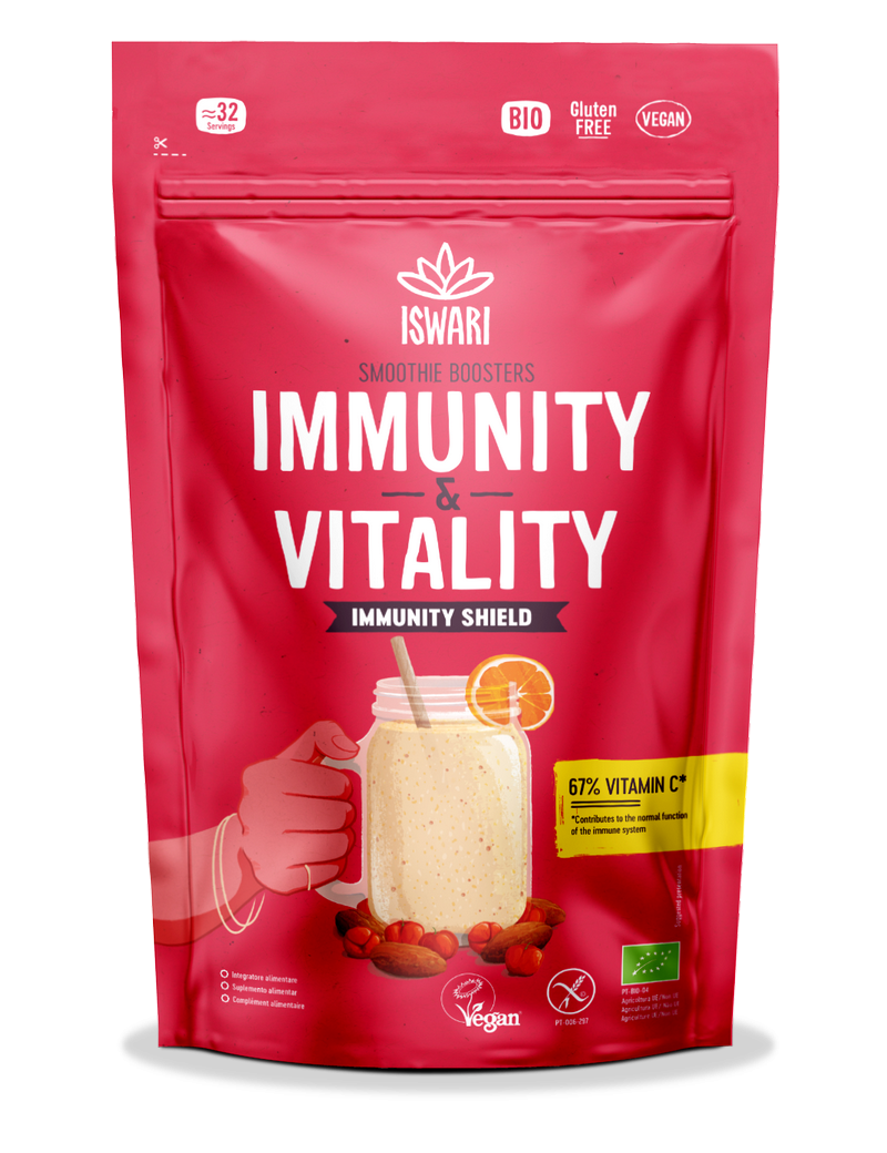 Een unieke mix, ontwikkeld om het immuunsysteem te versterken. Met slechts 1 afgestreken koffielepel per dag levert het 55% van de referentie-inname aan vitamine C, wat bijdraagt tot de normale werking van het immuunsysteem en helpt de cellen te beschermen tegen oxidatieve stress. Rijk aan vitamine C.