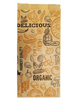 Zakjes van kraftpapier, bestemd voor het verpakken van groenten en fruit. Geschikt voor gebruik in winkels, voor het verpakken en meenemen van verse bulkproducten.