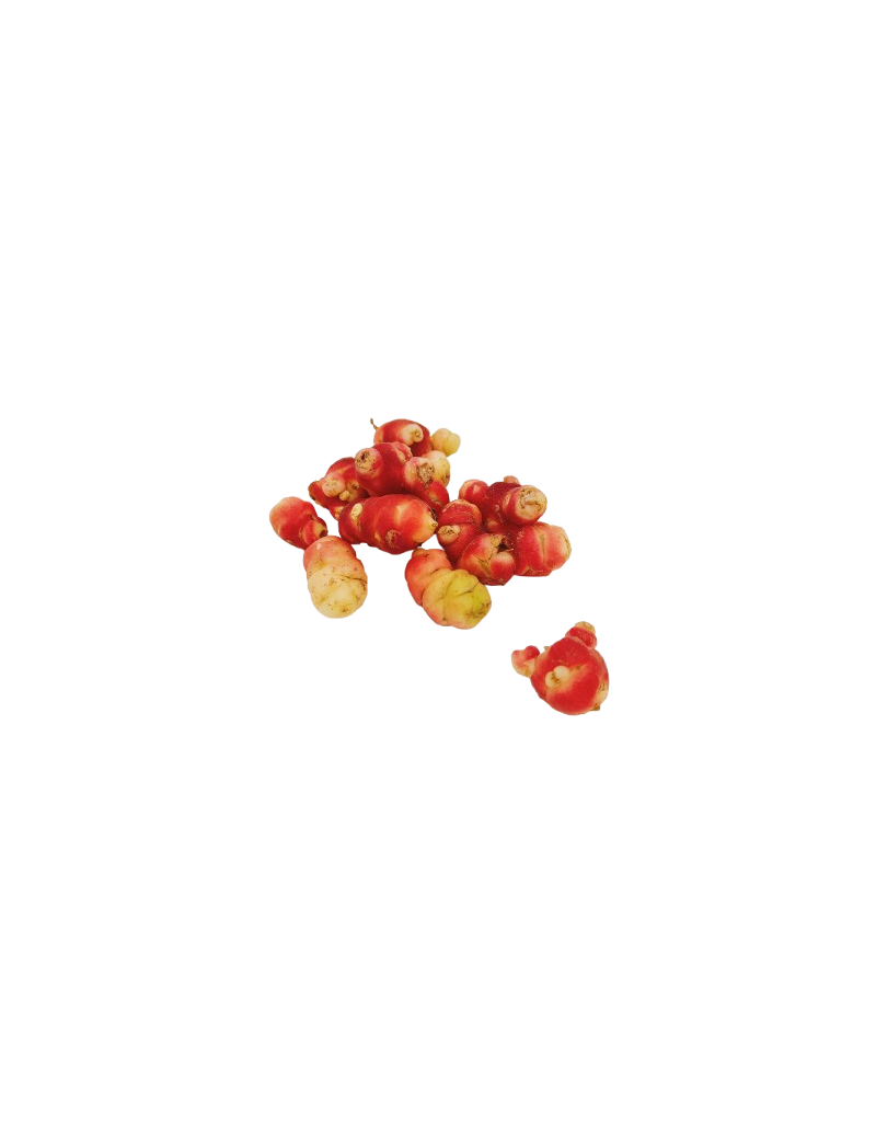 Oca uit Peru is een kleine Andesknol met levendige kleuren. Het vruchtvlees is licht zuur, met een textuur die doet denken aan aardappel. Gekookt, gebakken of in gratin – voedzaam én decoratief.