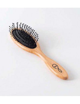 Haarborstel, kleiner model, aanbevolen voor het glad maken en ontwarren van korte tot middellange haren, gegolfd of gekruld haar. De nylon ontwart in de diepte en verlucht de hoofdhuid, terwijl het kussen een schokdempende rol heeft en een echt gebruiksgemak garandeert.