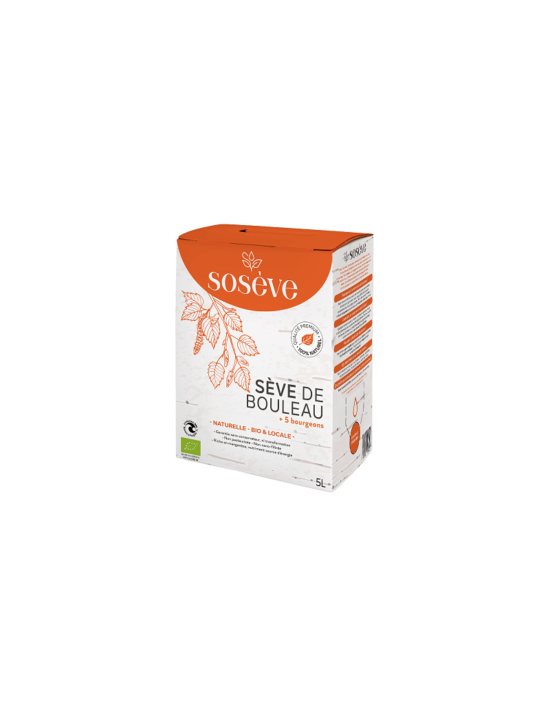 Sosève berkensap, verrijkt met 5 knoppen, combineert de natuurlijke deugden van sap met die van knoppen van zwarte bes, berk, es, kastanje en hazelaar. Het is van nature rijk aan mangaan en melkzuurbacteriën en werkt remineraliserend en revitaliserend. Om een uitzonderlijke kwaliteit te garanderen, bevat het gegarandeerd geen toegevoegde suikers, conserveringsmiddelen of alcohol en is het niet gepasteuriseerd of geflash-pasteuriseerd. Dit sap is biologisch gecertificeerd door Certisys en draagt het Nature & Progrès-label. Het zit boordevol voordelen voor je gezondheid en welzijn.