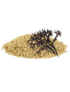 Gomasio (van het Japanse goma(sesam) en shio (zout) is een smaakvolle toevoeging voor allerlei schotels. De sesam en het zout worden lichtjes geroosterd in een houtoven en samen gekneusd in een stenen vorm. Elk zoutdeeltje wordt alzo omhuld met de olie van het sesamzaad. Dit maakt een beter opneembaarheid van het zout mogelijk. Sesamzaad is gekend om zijn rijkdom aan fosfor, magnesium en calcium. De rijkdom aan vetten en de aanwezigheid van lecitine maakt van de gomasio een uitstekend voedingsmiddel voor het zenuwstelsel en de botstructuur. Door de aanwezigheid van het zeezout levert het ook een aantal zeldzame oligo-elementen. De "Zee gomasio" is een heerlijke mengsel van sesam, ongeraffineerd zout en franse Nori algen. Deze originele specerij met haar hazelnootsmaak is een geweldig zacht alternatief voor zout, en levert U het beste van de zee met de Norialgen, en het beste van de aarde met de sesam. Gebruik: over granen en rauwkost strooien, a ratio van 1 soeplepel per maaltijd, heeft een nootjesachtige smaak.