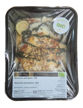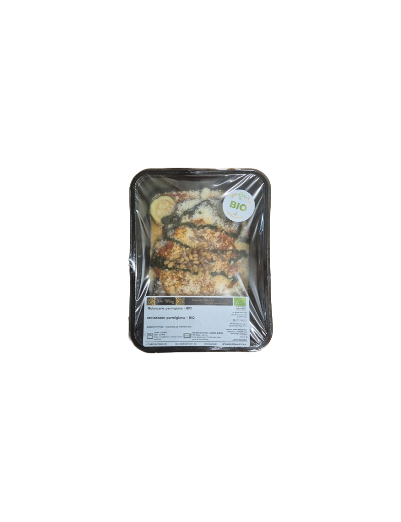 Italiaanse klassieker op basis van gegrilde aubergine, courgette en parmezaan, Geserveerd in een tomatensausje en afgewerkt met basilicum olie en pitjes.